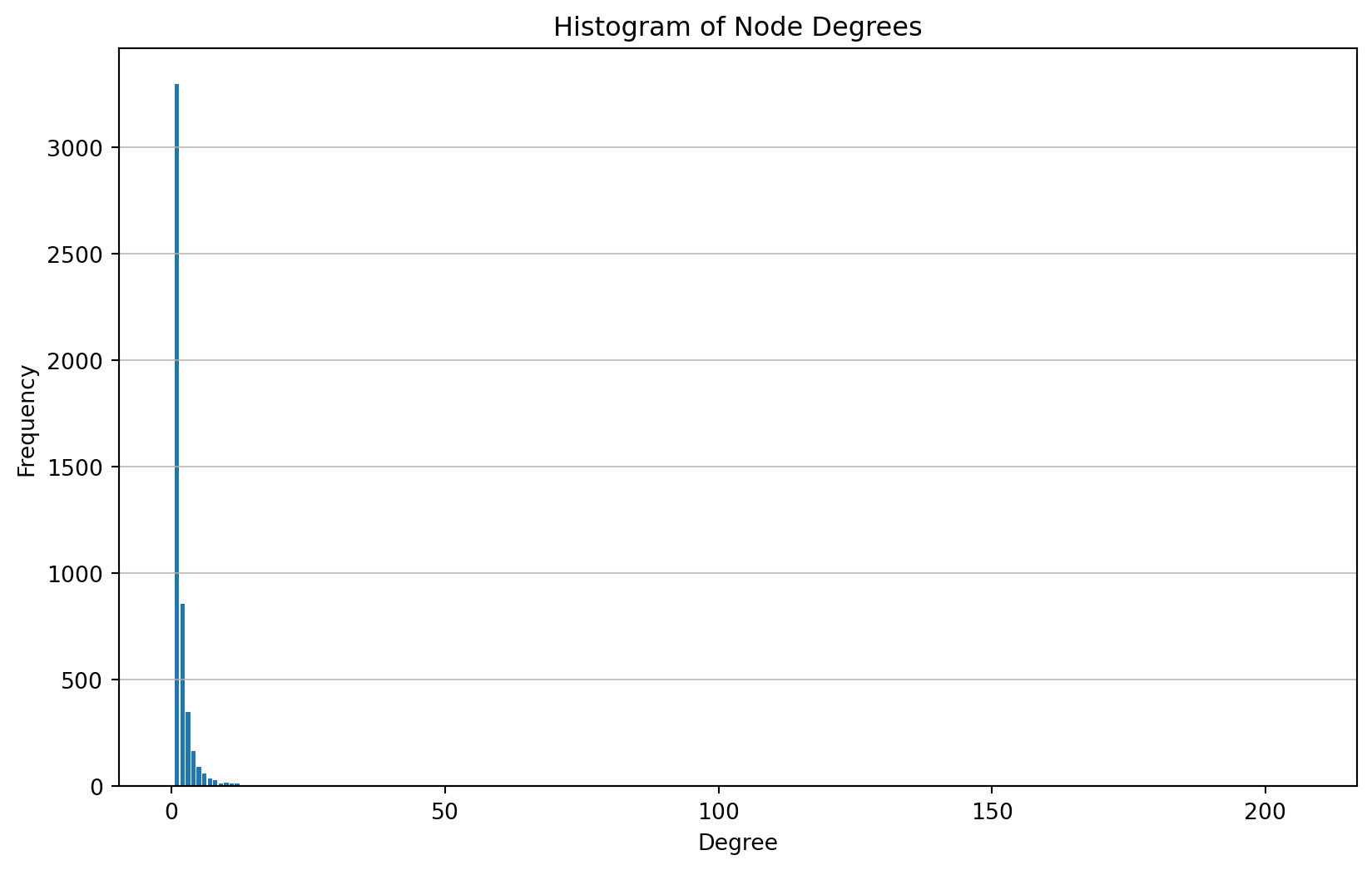 print(f"Degree: {degree}, Frequency: {degree_count[degree]}")Top 5 largest degrees and the number of nodes with those degrees:
