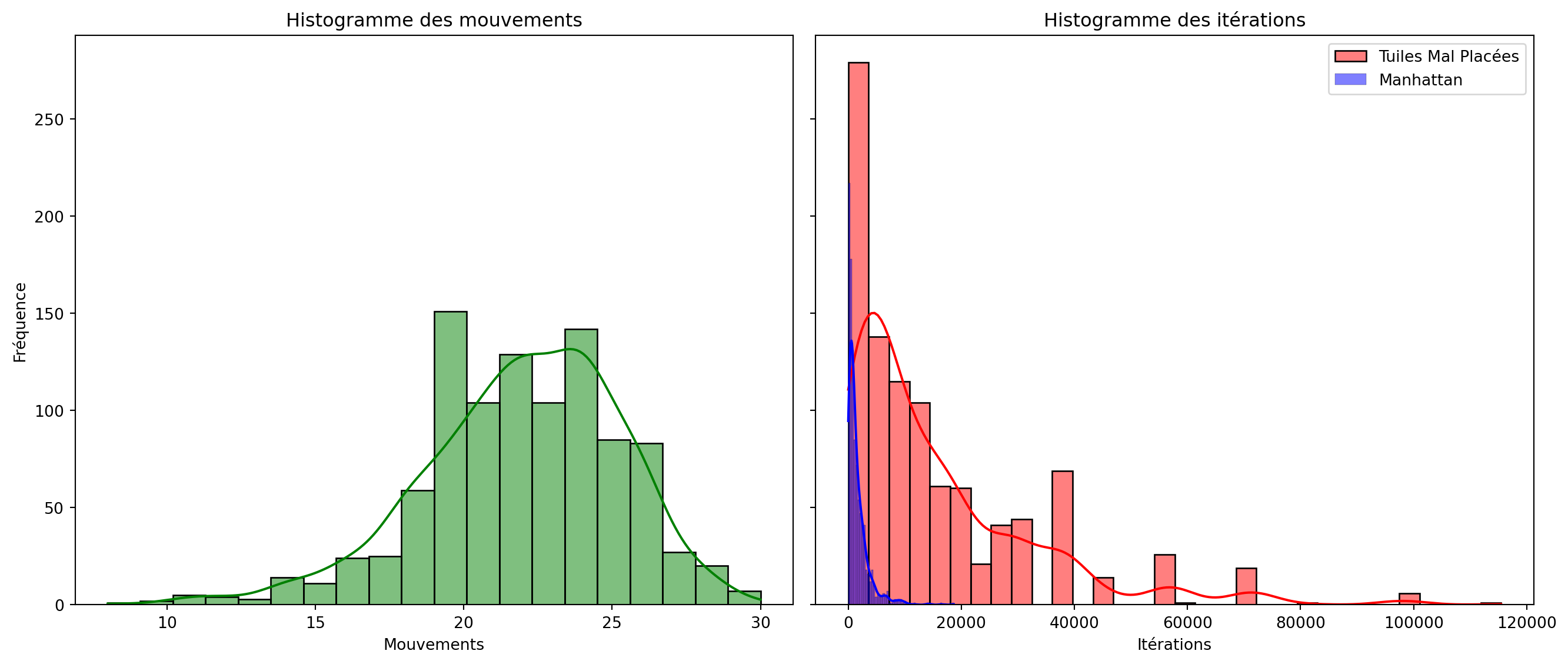 La recherche du meilleur d’abord identifie la solution optimale, 25 mouvements, en 2 255 itérations.